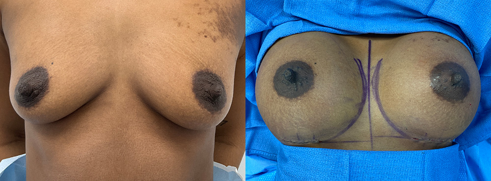 Este caso nos muestra los resultados de un aumento de senos realizado en una paciente de 22 años que ademas tiene un hijo. La doctora Luster utilizó implantes de silicona de perfil lleno o alto perfil de 520cc en cada seno para lograr una apariencia voluminosa y redondeada de los mismos. Las fotos de antes y despúes nos muestran una transformación radical en cuanto a la proyeccion de los senos tras el procedimiento.