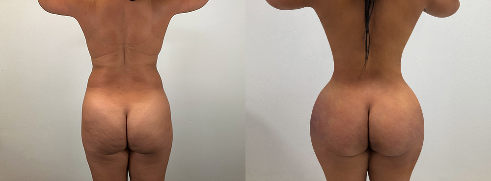 El levantamiento de glúteos brasileño remodeló el cuerpo de esta paciente blanca de 53 años agregando volumen a los glúteos. Se transfirió 300cc de grasa del abdomen y los flancos para crear un aspecto más completo y esculpido, lo que le dio una forma corporal mejorada.