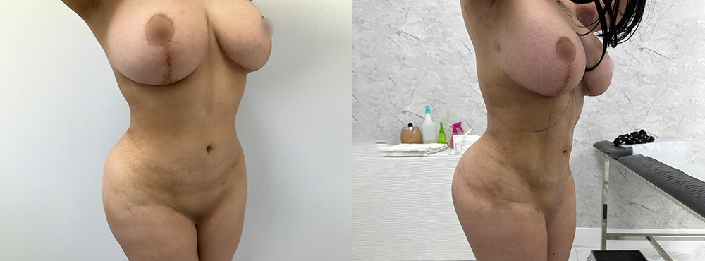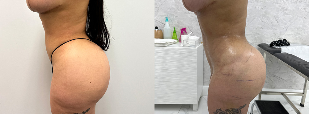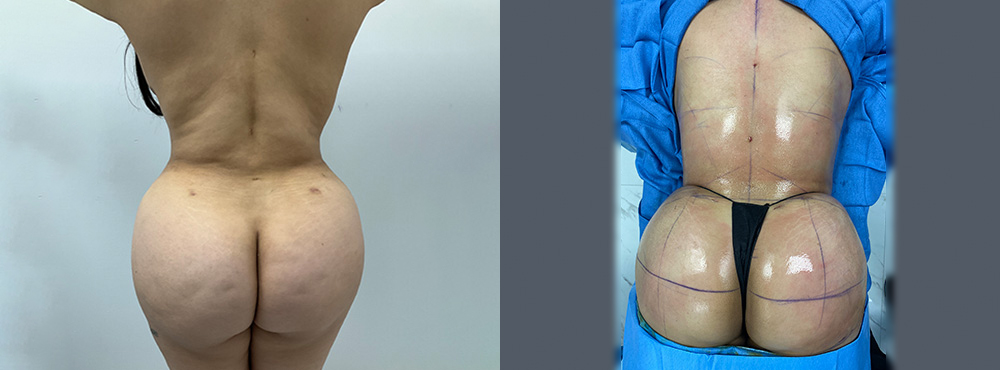 Esta paciente de 28 años se sometió a una segunda vuelta de aumento de glúteos con transferencia de grasa porque queria un trasero más lleno que no habia conseguido tras el primer procedimiento. En esta segunda ronda consiguió ese volumen y proyección que deseaba y tambien moldeó y adelgazó la cintura, mejorando las proporciones corporales para lograr una figura más definida y curvilínea.