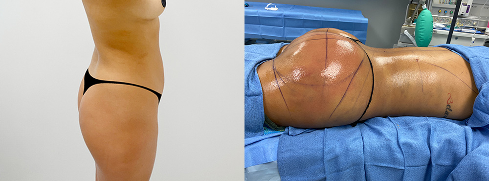 Este es el segundo BBL o levantamiento de glúteos a que se somente esta paciente de 29 años buscando darle a sus glúteos un aspecto más juvenil, atractivo y levantado. Se transfirió 600cc de grasa del abdomen para esculpir la parte posterior y nalgas, mejorando el volumen y la forma, al mismo tiempo que se adelgazaba la cintura para lograr una figura más armoniosa en forma de reloj de arena.