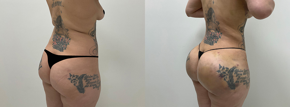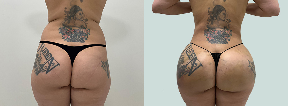 Esta paciente de 39 años optó por un levantamiento de glúteos brasileño, lo que le dio como resultado una cintura estrecha y esculpida y un trasero más lleno y levantado. A pesar de tener un IMC de 33.9 los procedimientos realzaron sus curvas naturales, dándole una silueta mejorada y equilibrada.