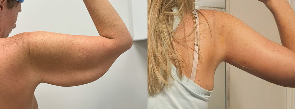 En este resultado de caso una paciente de 33 años optó por un procedimiento de levantamiento combinado con liposuccion de brazos con la Dra. Stephanie Luster para mejorar el contorno de la parte superior de los mismos. Al eliminar el exceso de piel y tensar el tejido,la cirugia le dio una apariencia más tonificada y juvenil.