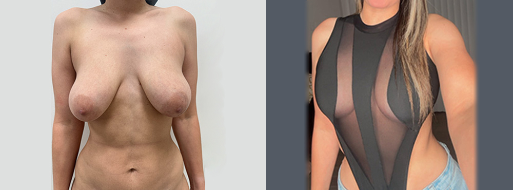 Este caso muestra los resultados de una paciente blanca de 28 años que tras realizarse un levantamiento de senos en Miami con La doctora Luster ahora exhibe unos senos femeninos firmes y realzados. Con la cirugia tambien se redujo y reposiciono las aureolas despues de quitar el tejido mamario y el exceso de piel con una incison en forma de T. La paciente opto por el levantamiento con implantes de perfil medio redondos para dar un extra en cuanto a proyeccion.